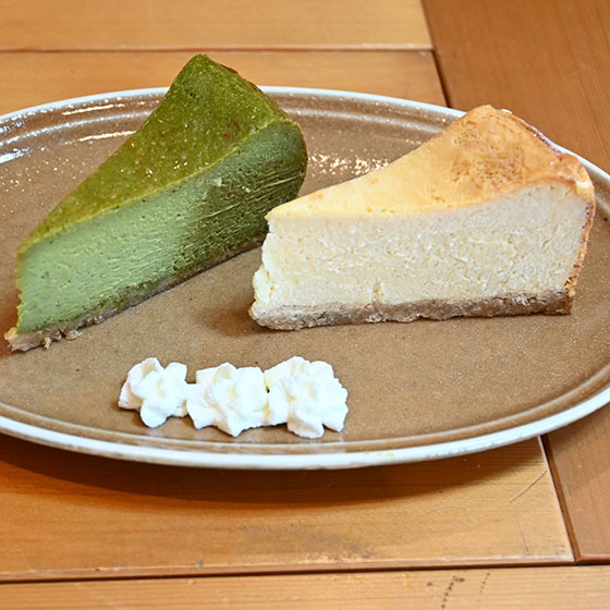 オートミールを砕いて作ったボトムの上に、濃厚なチーズケーキ。